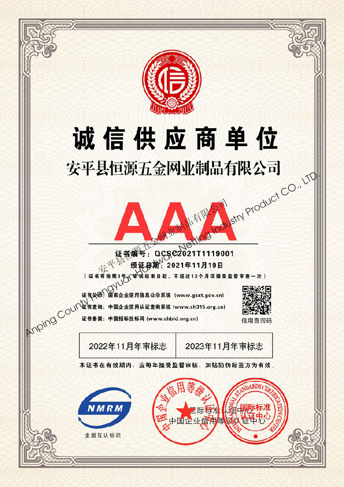 多年來,安平縣恒源五金網(wǎng)業(yè)制品有限公司堅持“科技興企、質(zhì)量立業(yè)”的經(jīng)營理念和“誠心為本、客戶至上”的合作宗旨,優(yōu)化生產(chǎn)工藝,打造優(yōu)質(zhì)產(chǎn)品,提供完善的服務,受到國內(nèi)外客戶的一致好評,產(chǎn)品行銷全國各地,并出口美國、德國、韓國、日本、臺灣等國家和地區(qū)。